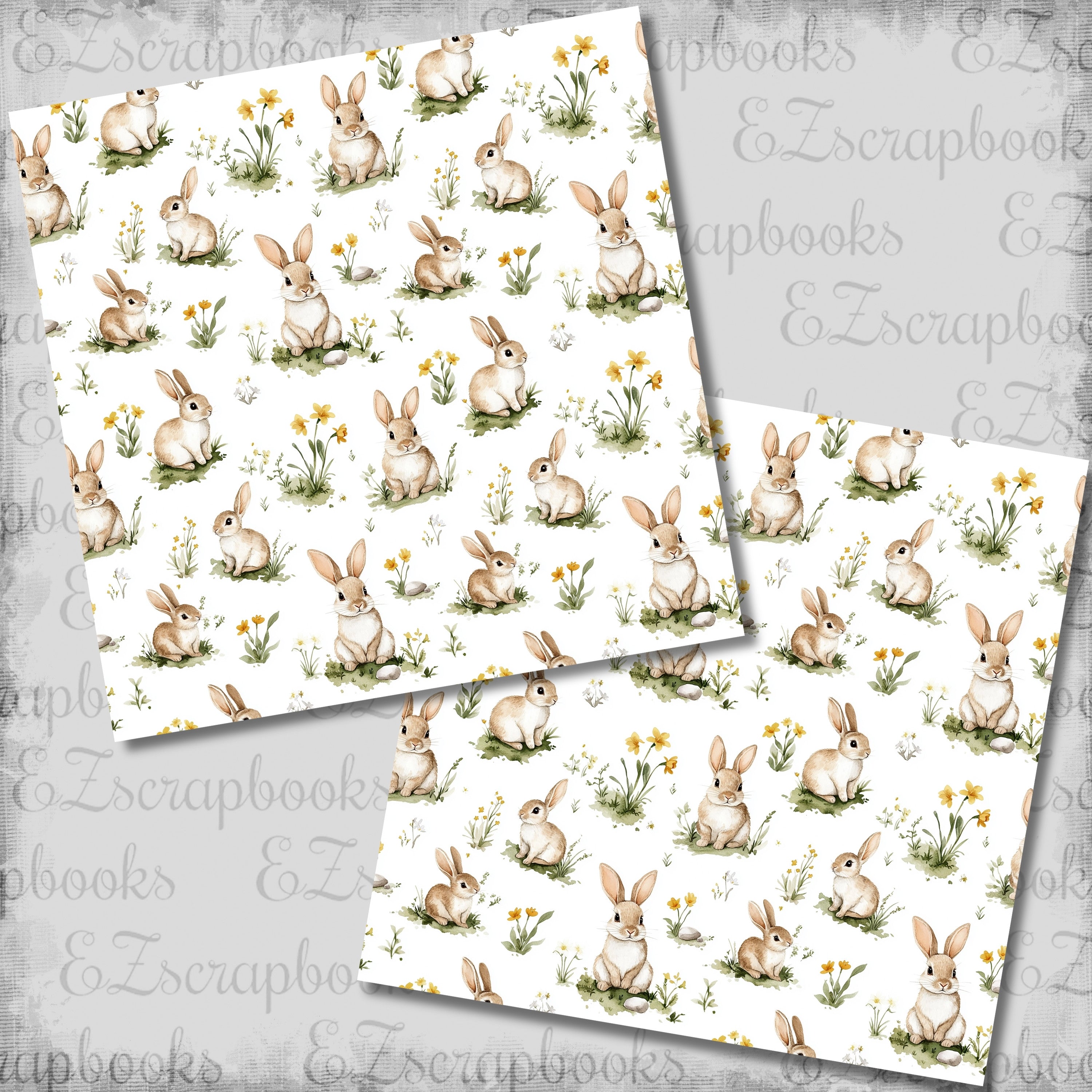 Pastel Easter Bunny Floral - 12x12 Scrapbook Papers - 26-150