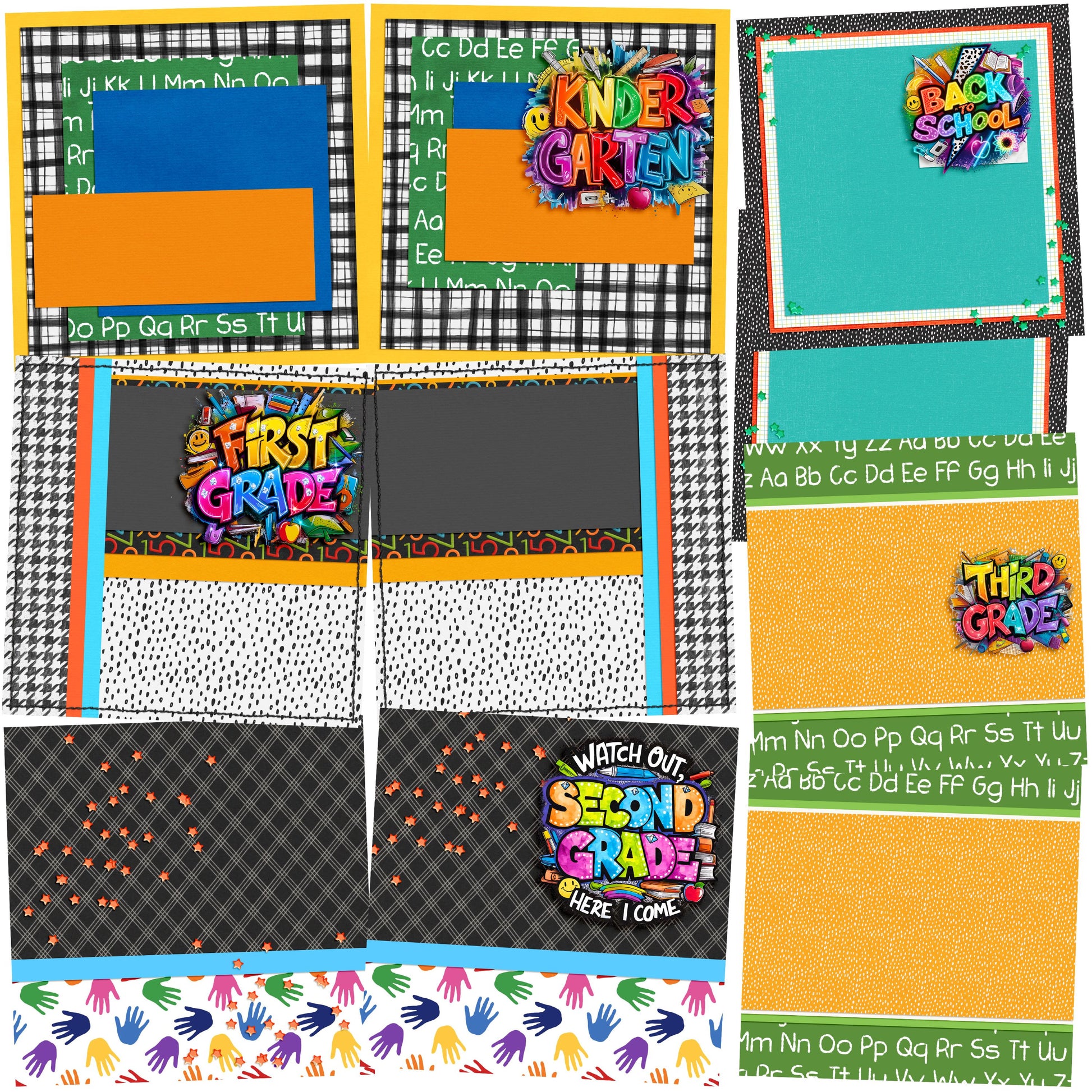 Back to School Boy Collection 1 EZ Background Pages - Digital Bundle - 10 Digital Scrapbook Pages - INSTANT DOWNLOAD