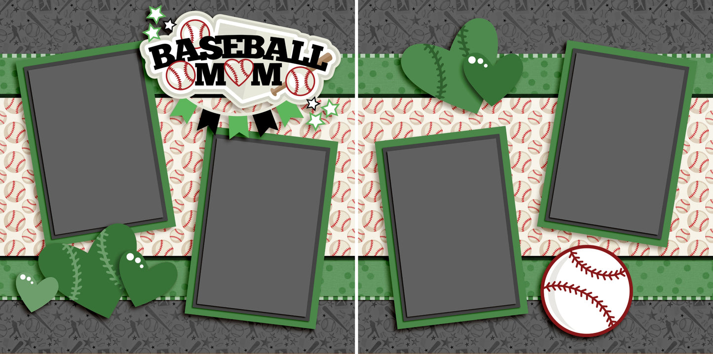 12"x12" premade Baseball scrapbook pages. Double page Layouts. 3D like look!