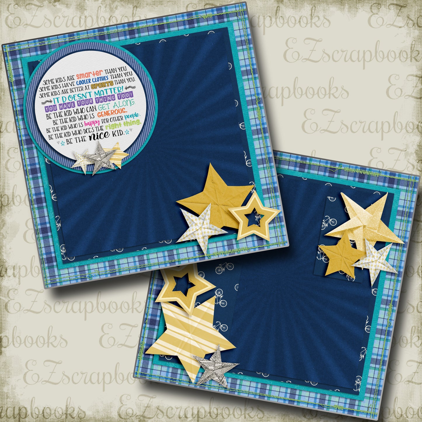 Pre-made double page scrapbook layout. Pages are 12 X 12 and professionally printed on high quality, lightly textured cardstock. Featuring orignal artwork by Ruby Lou Designs.