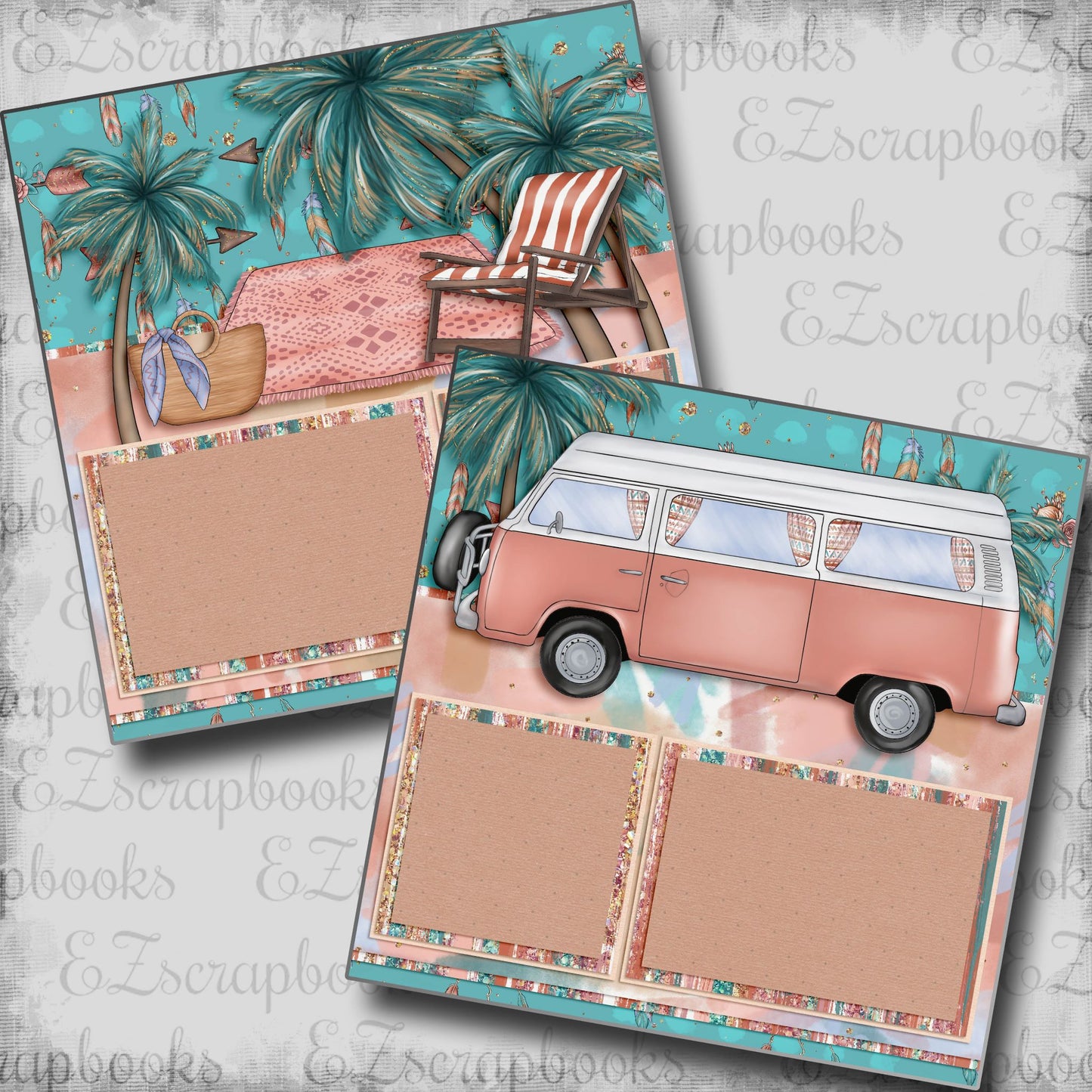 Two 12X12 scrapbook pages created and professionally printed on high quality cardstock. Just add photos!