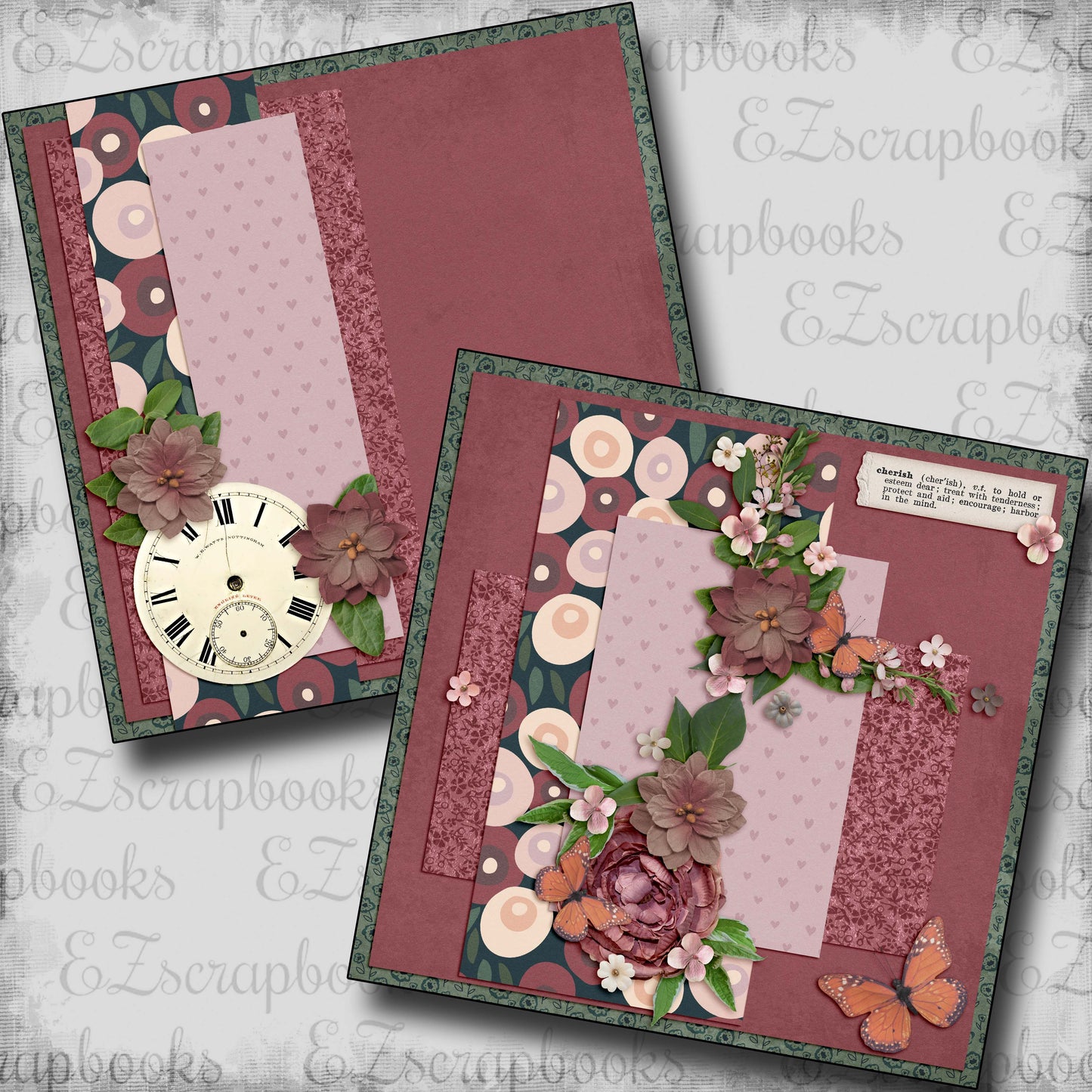 2 12X12 scrapbook pages designed and professionally printed on high quality card stock. Just add photos!