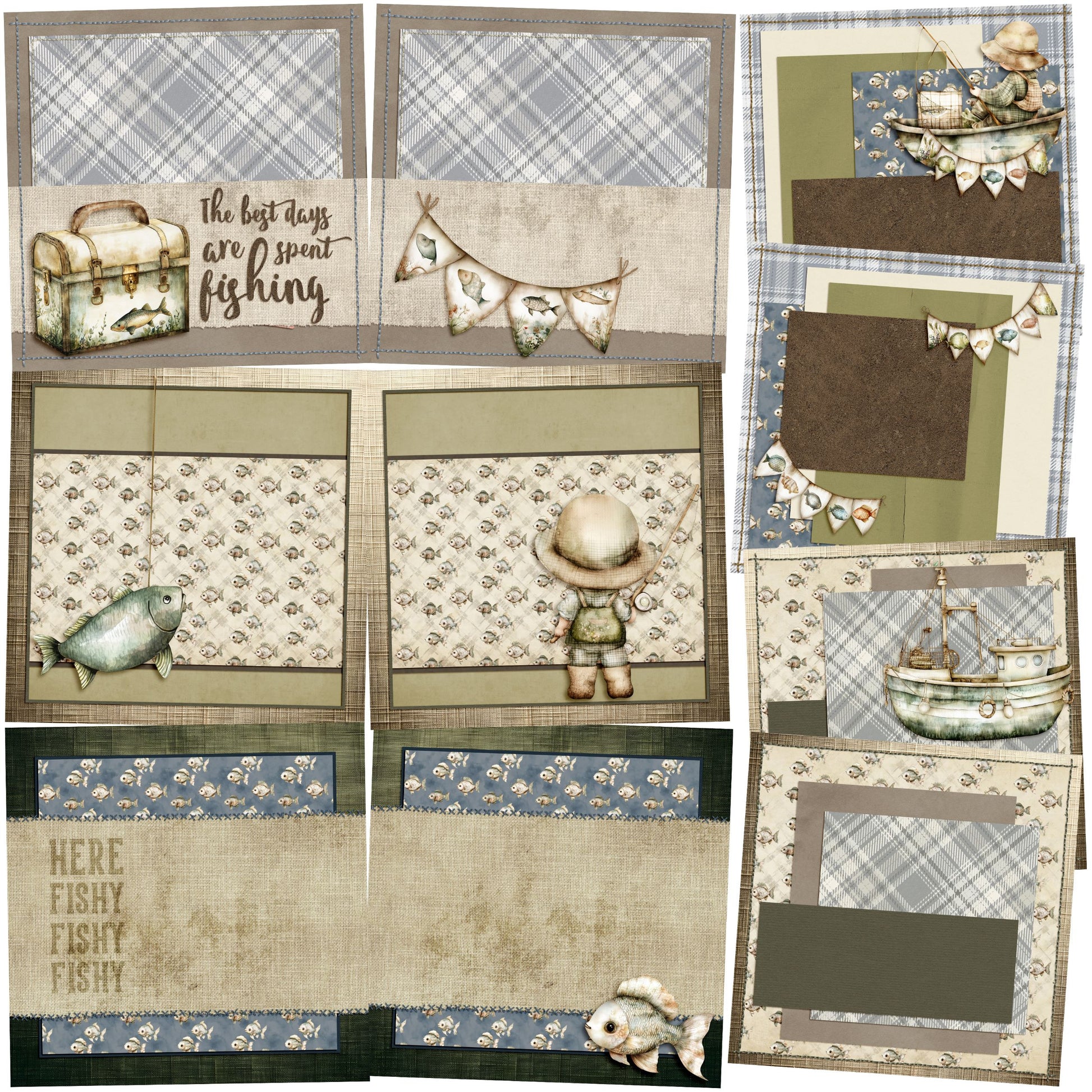 Cute Fisherman NPM - Set of 5 Double Page Scrapbook Layouts - 25-1019