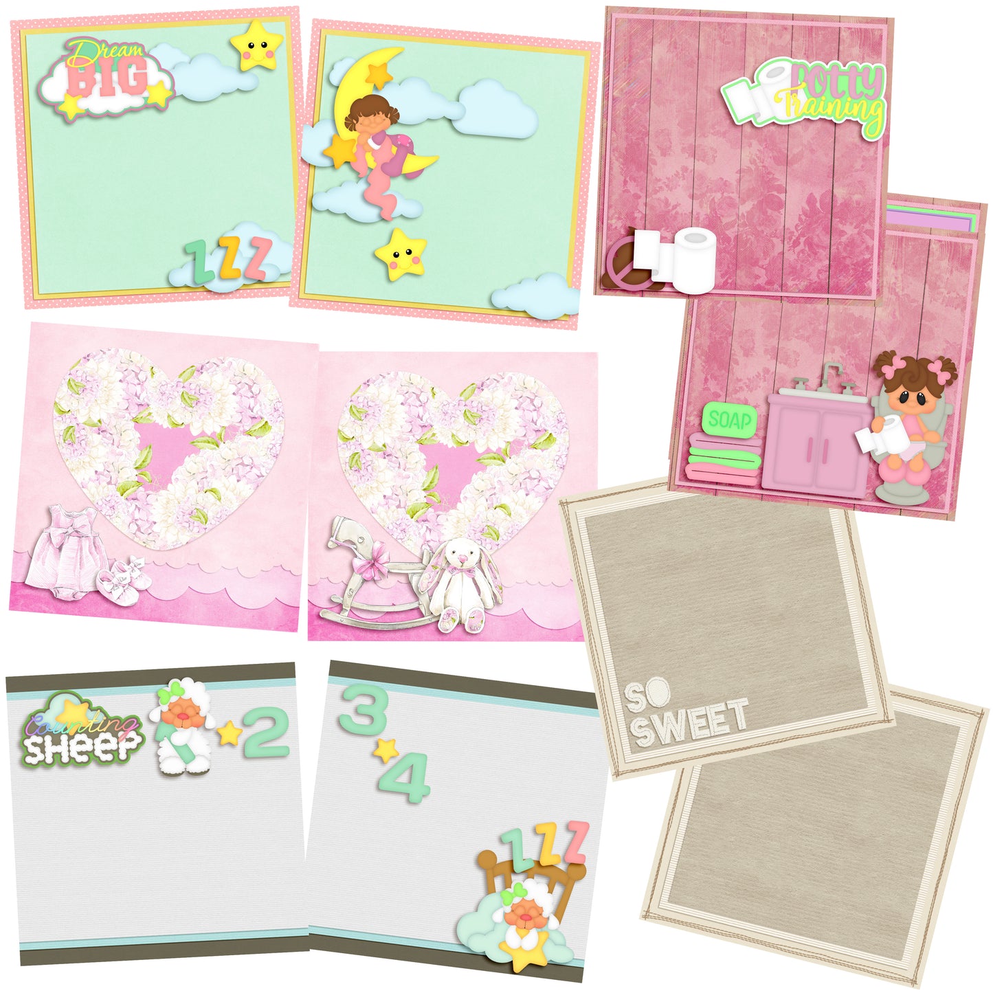Dream Big Baby Girl EZ Background Pages - Digital Bundle - 10 Digital Scrapbook Pages - INSTANT DOWNLOAD