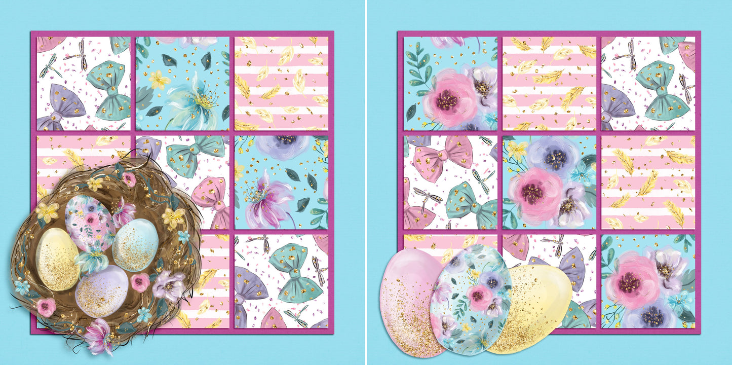 2 12X12 scrapbook pages designed and professionally printed on high quality card stock. Just add photos!