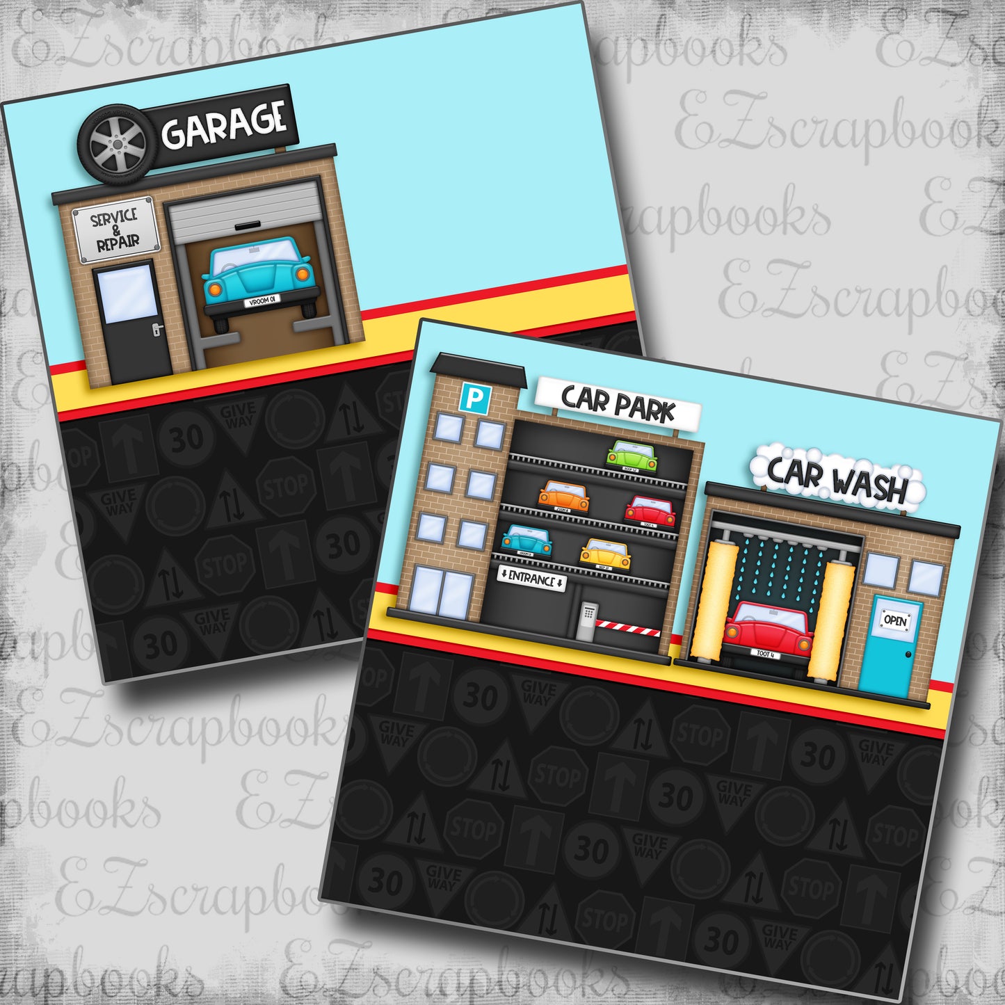 2 12X12 scrapbook pages designed and professionally printed on high quality card stock. Just add photos!