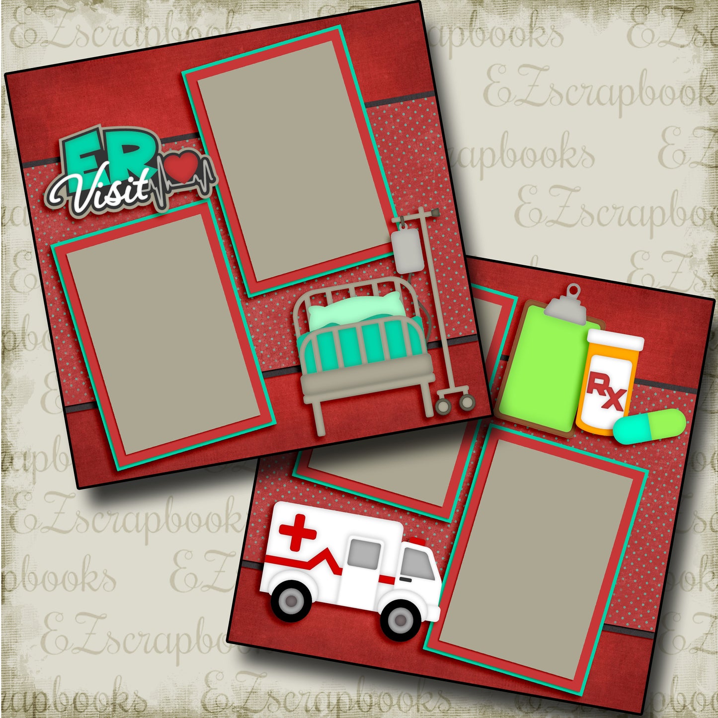 12"x12" premade scrapbook pages. Double page Printed Layouts. 3D like look!
