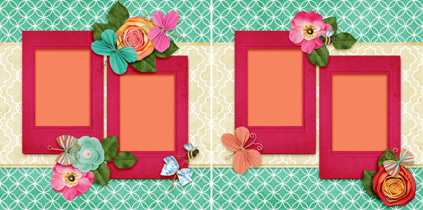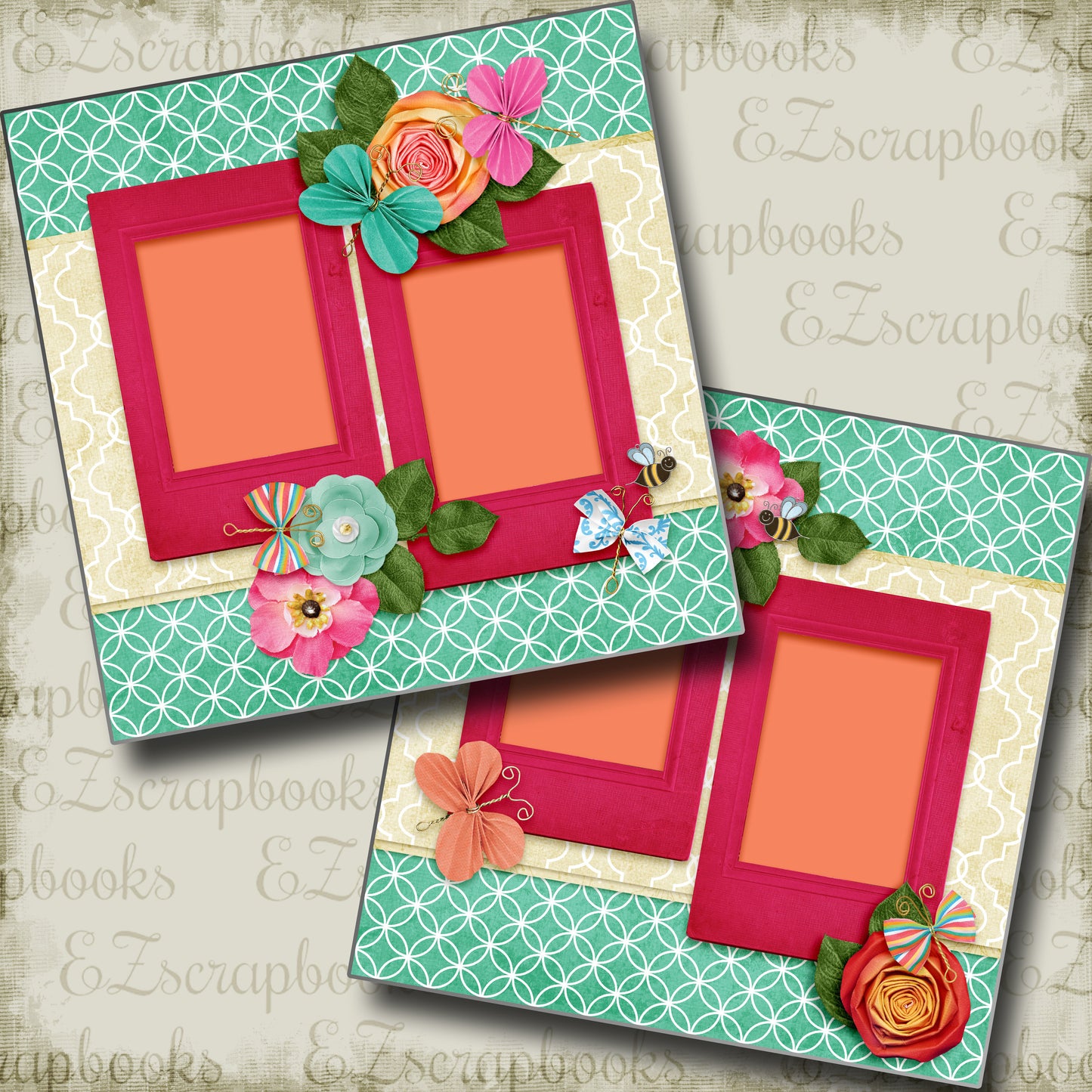 12"x12" premade scrapbook pages designed and then professionally printed on high quality cardstock. 3D like look! Just add photos!