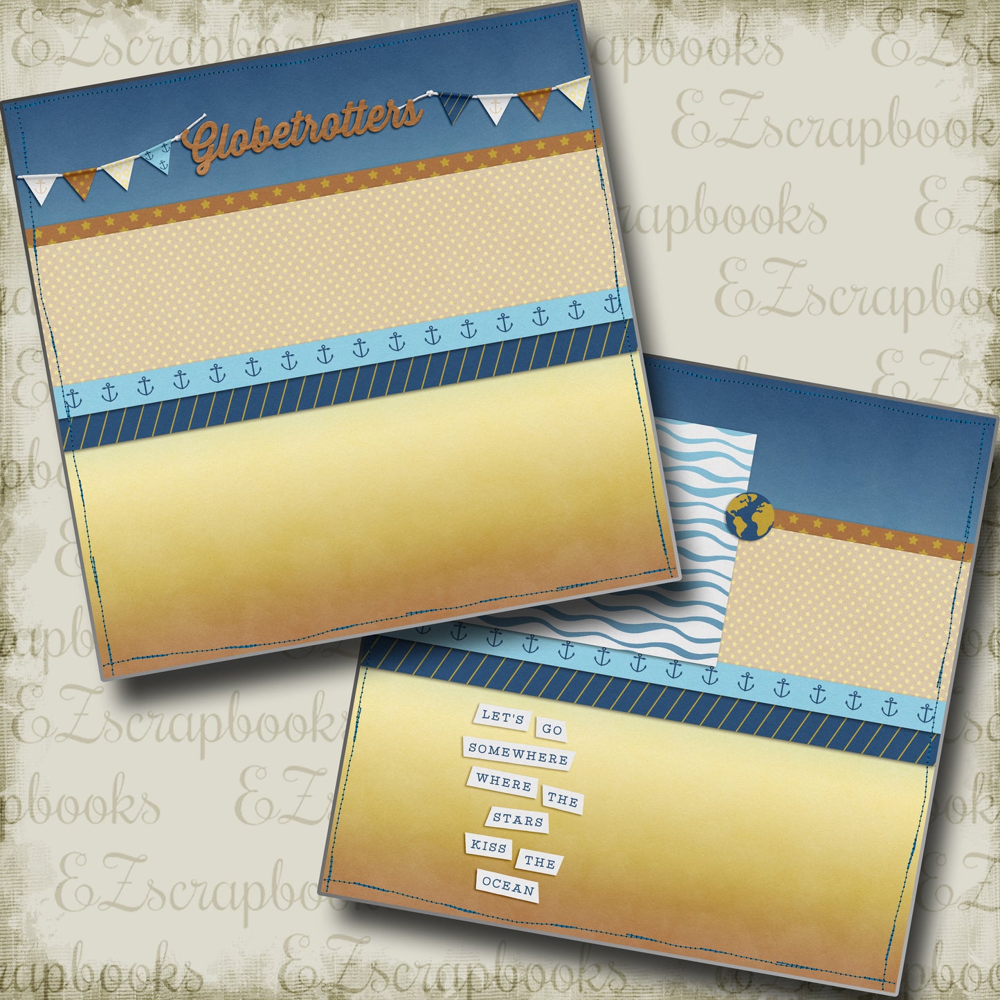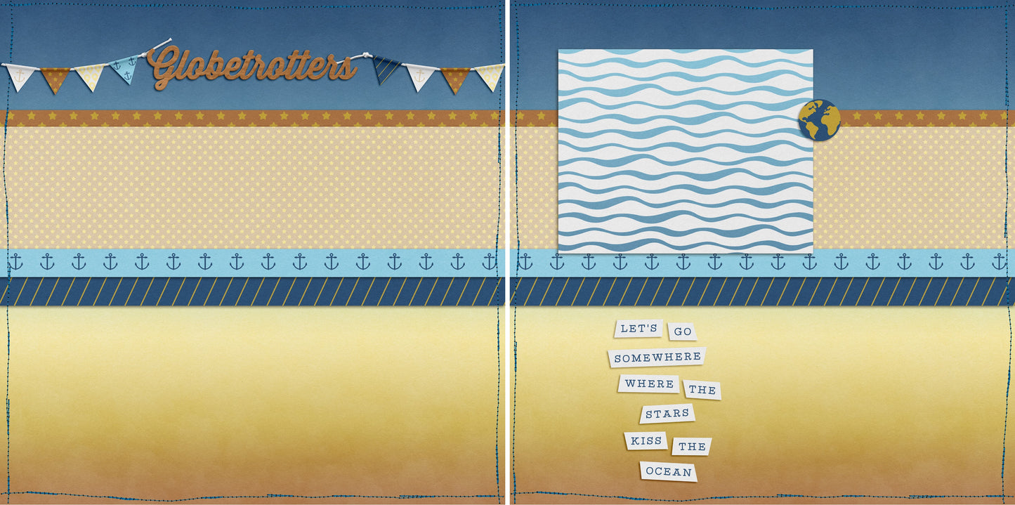 2 12X12 scrapbook pages designed and professionally printed on high quality card stock. Just add photos!