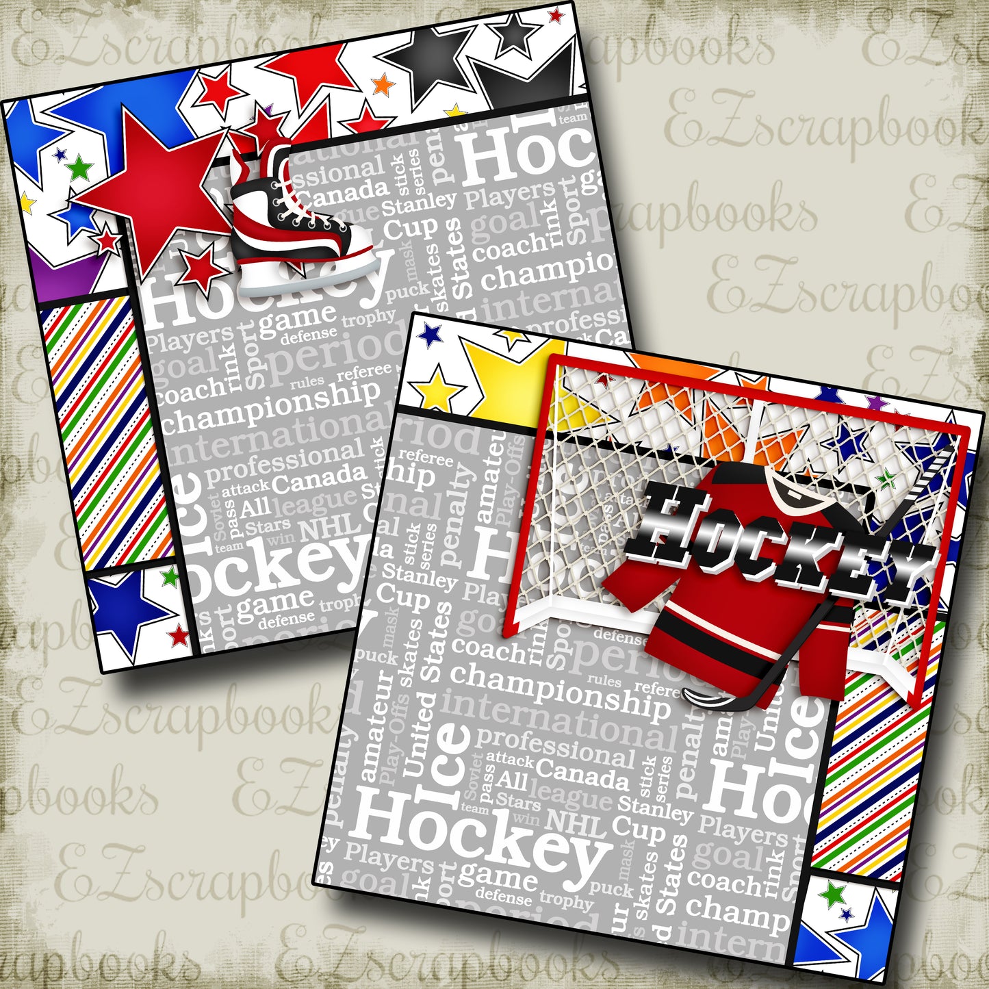 2 12"x12" scrapbook pages designed and then professionally printed on high quality cardstock. Just add your photos!