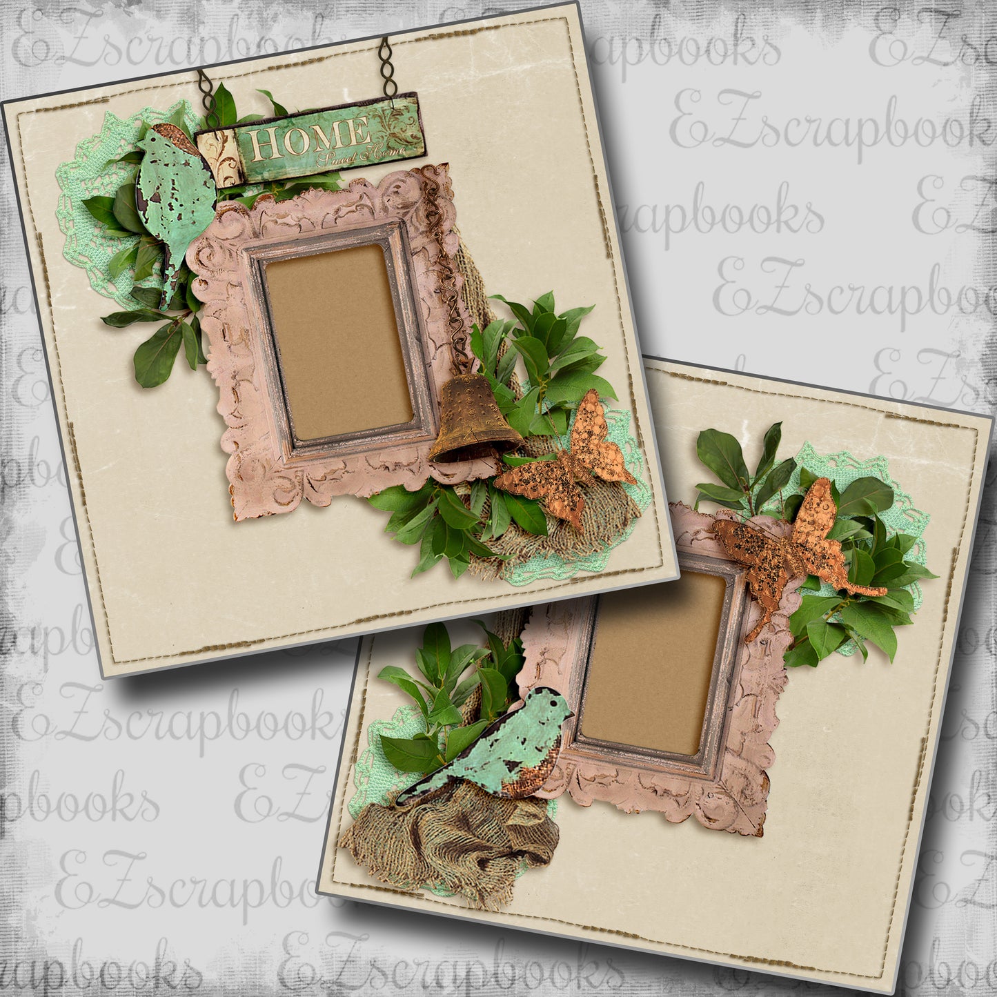 Two 12X12 scrapbook pages designed and professionally printed on high quality card stock. Just add photos!