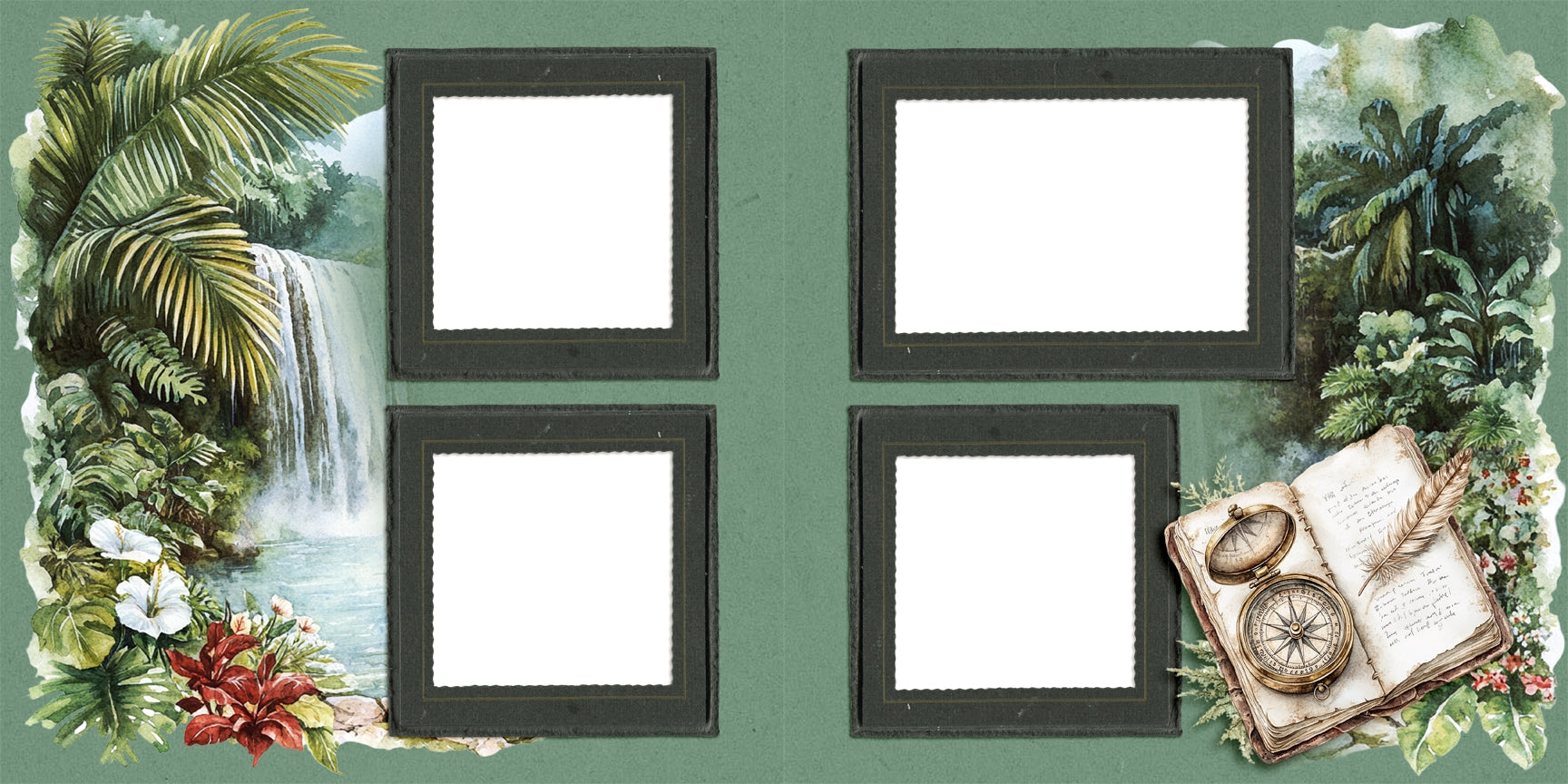 Jungle Safari Waterfall - EZ Digital Scrapbook Pages - INSTANT DOWNLOAD