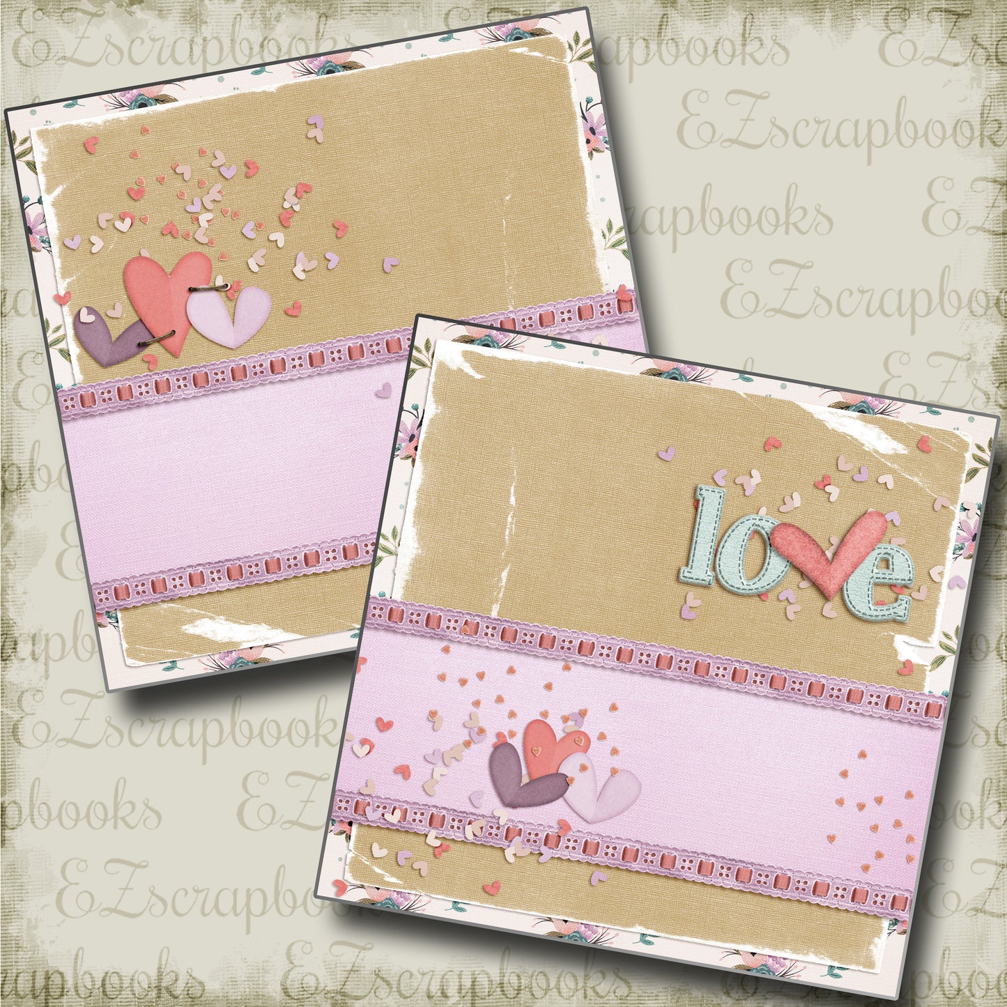 2 12X12 Scrapbook pages designed and then professionally printed on high quality card stock. Just add photos!