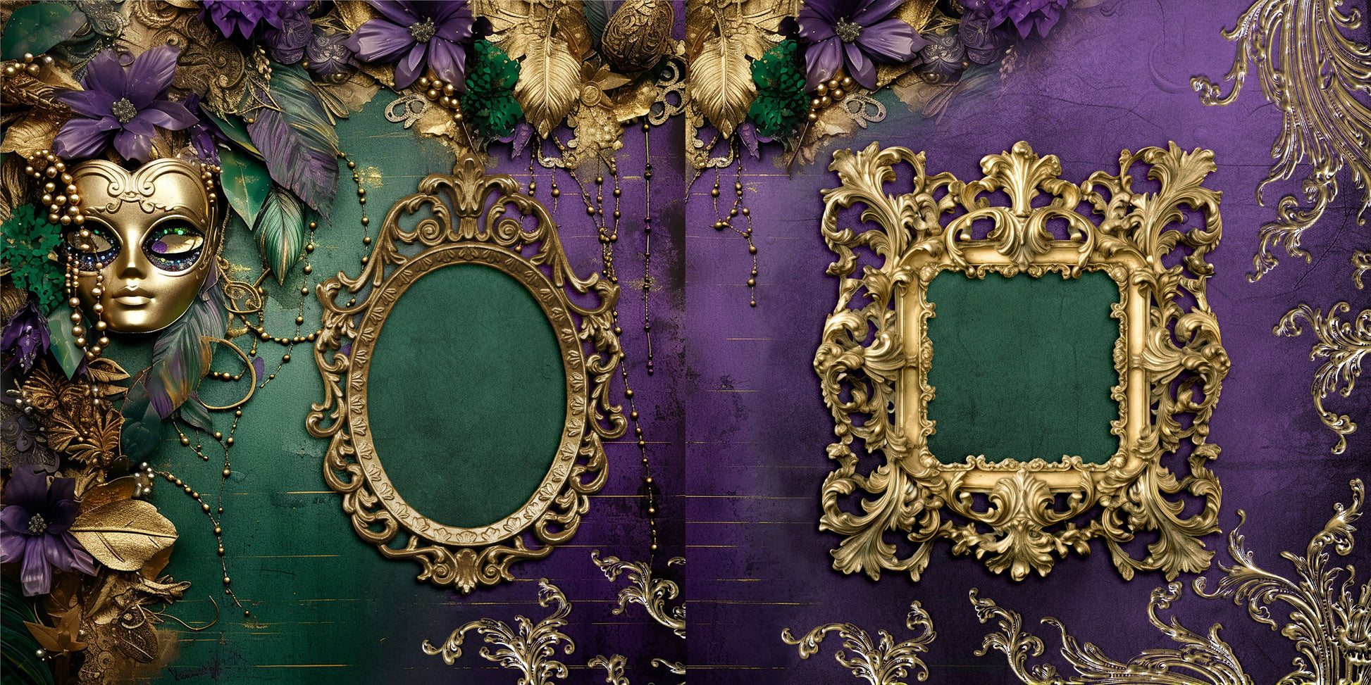 Mardi Gras Time - Set of 5 Double Page Scrapbook Layouts - 25-1022