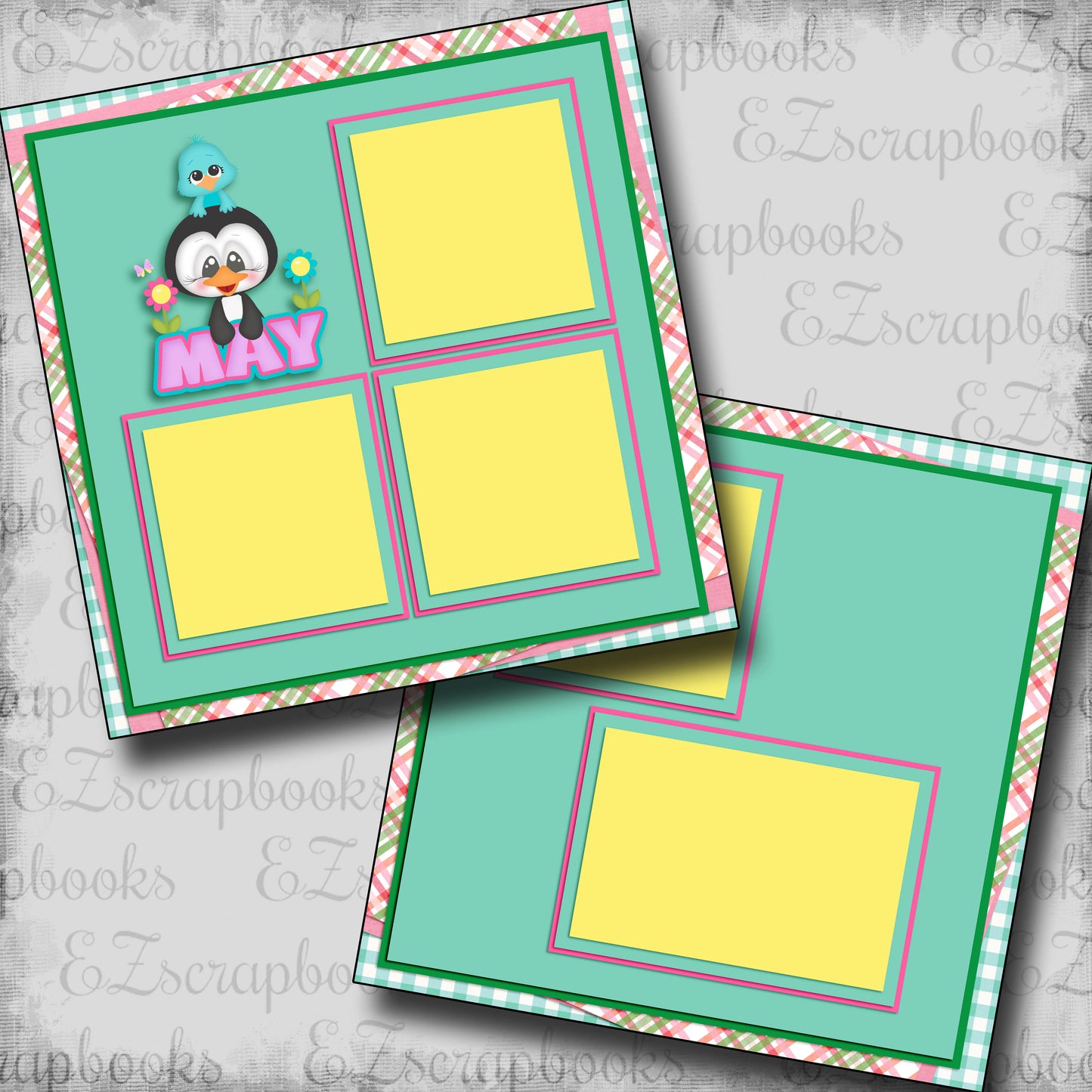 Two 12X12 scrapbook pages created and professionally printed on high quality cardstock. Just add photos!