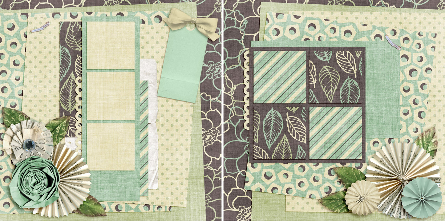 2 12X12 Scrapbook pages designed and then professionally printed on high quality card stock. Just add photos!