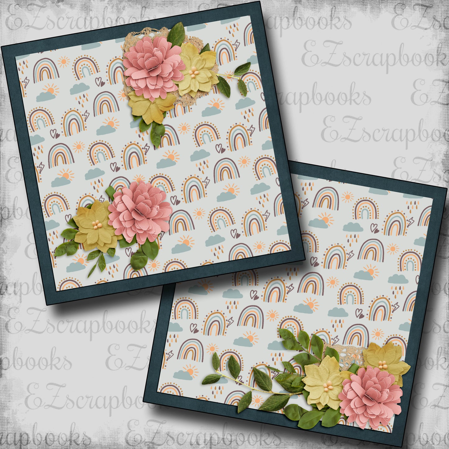 2 12X12 scrapbook pages designed and professionally printed on high quality card stock. Just add photos!