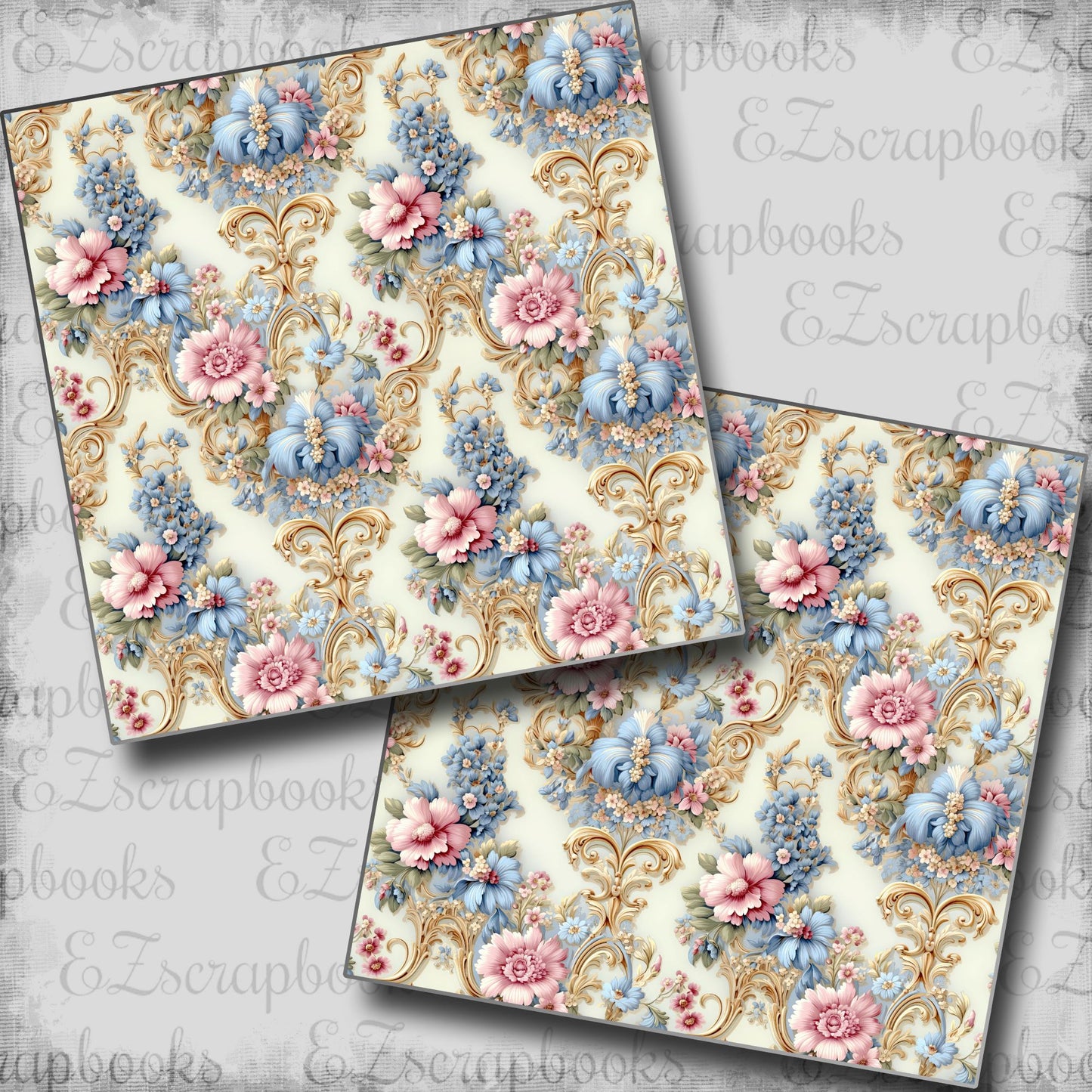 Two 12X12 scrapbook papers professionally printed on high quality cardstock. Great for adding additional pages to your pre-made EZ Quick Page layouts!