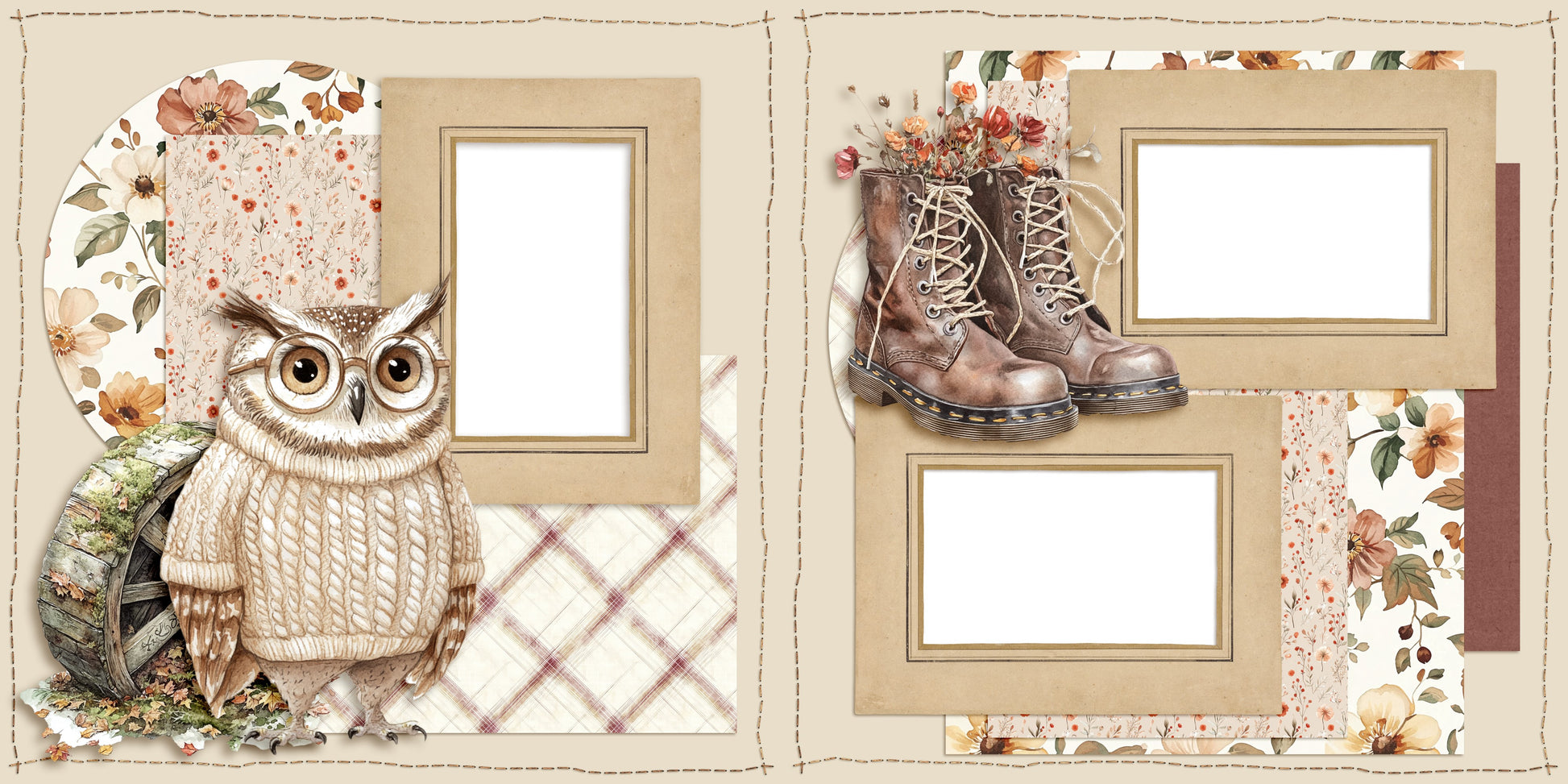 Spelling Autumn Owl - EZ Digital Scrapbook Pages - INSTANT DOWNLOAD