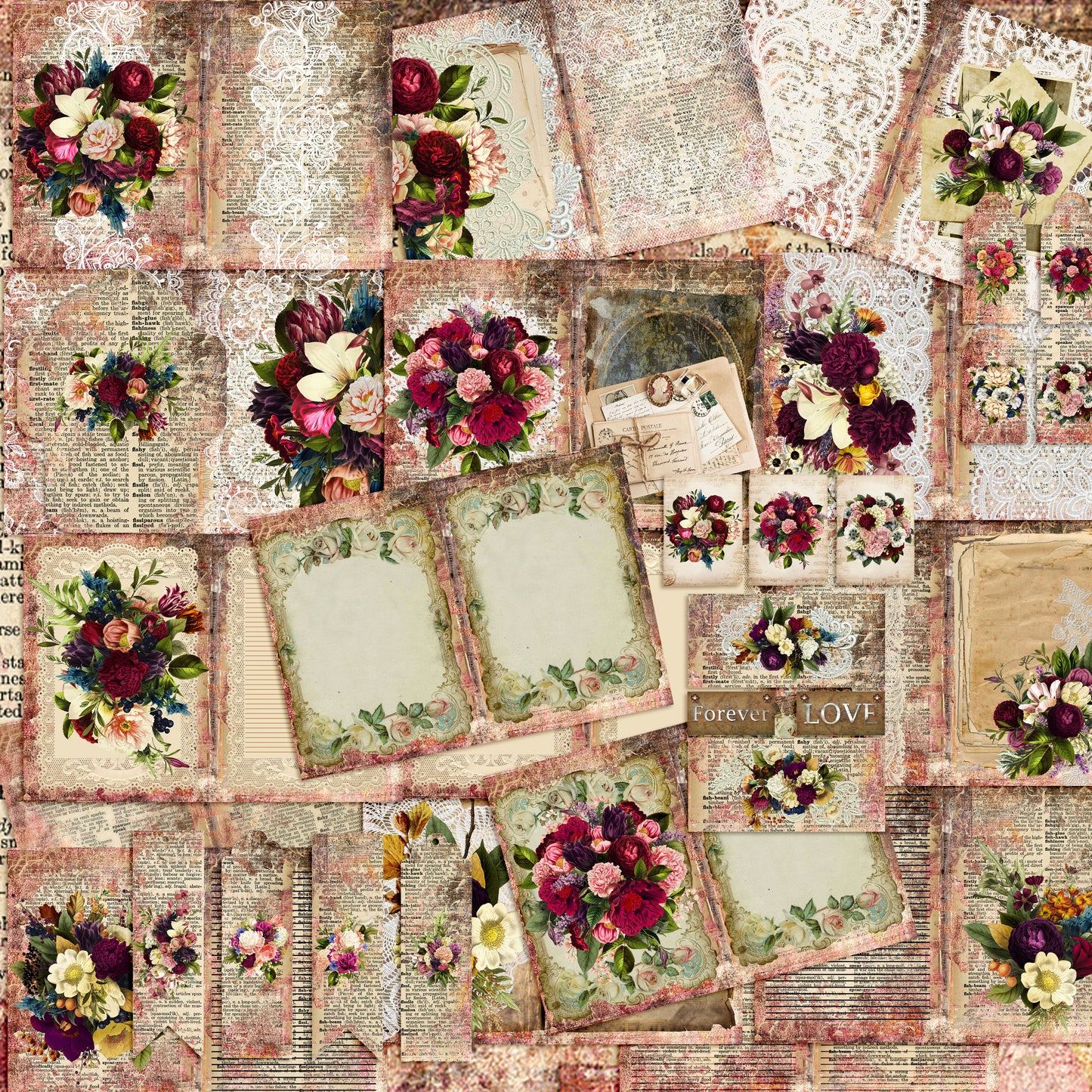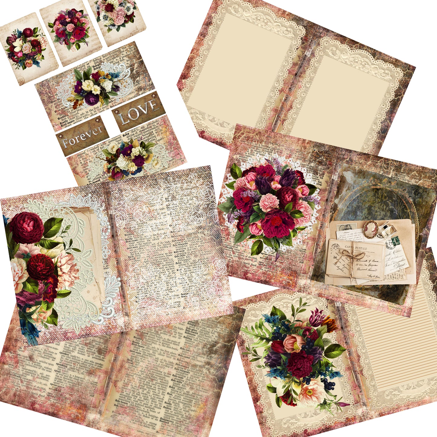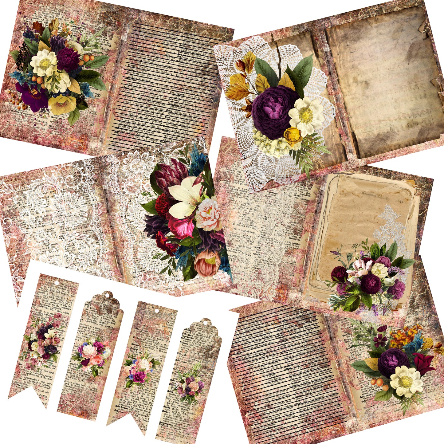 Love Journals? Here is a journal paper pack with beautiful graphics ready for you to cut and assemble! Add in left over scraps of papers, cards, fabric or anything else you like! These pages are also great to incorporate into your scrapbook layouts! *Card stock*
