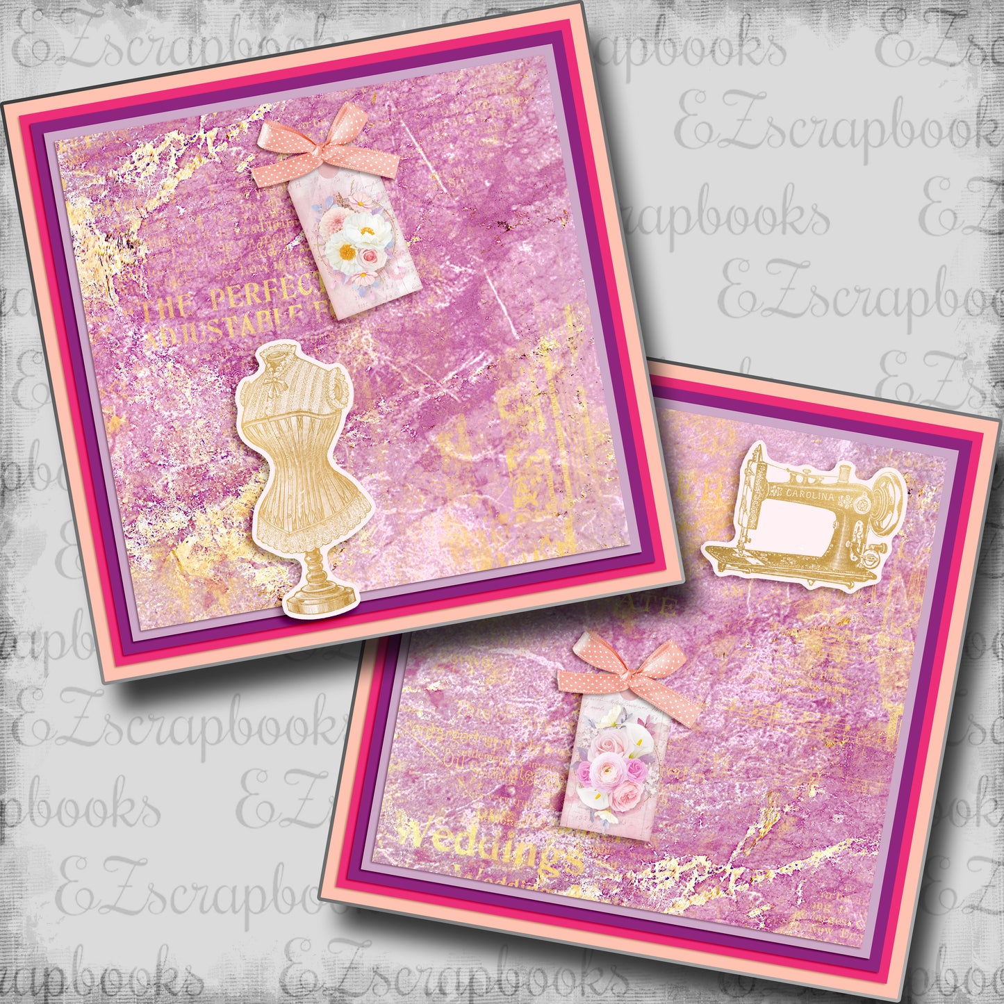 Two 12X12 scrapbook pages designed and professionally printed on high quality card stock. Just add photos!